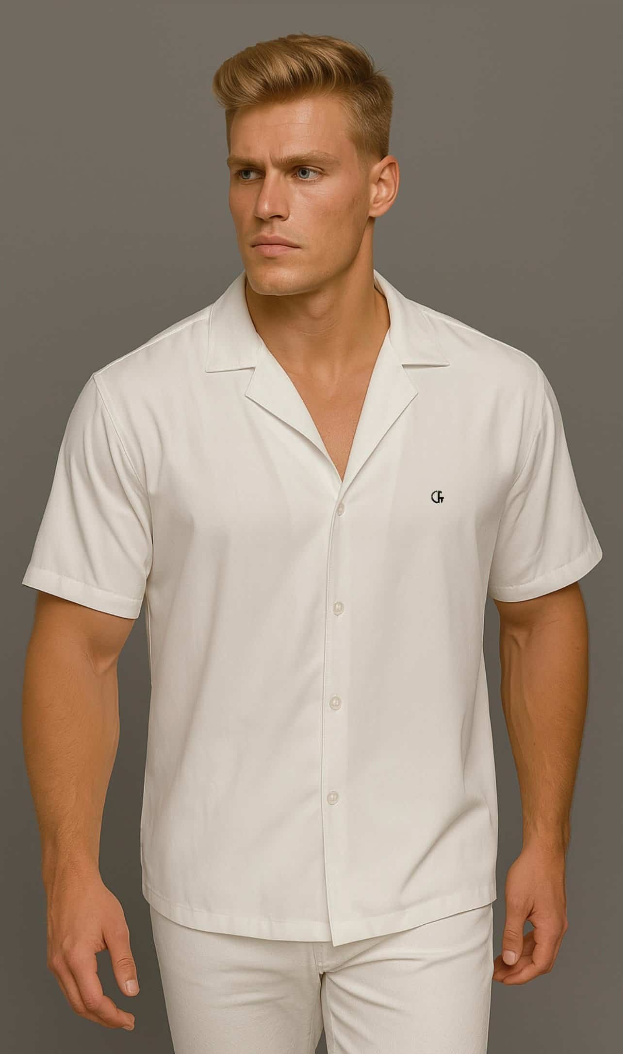 Elevate your wardrobe with this timeless white short-sleeve button-up shirt, crafted for both comfort and style. Made from a soft, breathable fabric with a subtle texture, this shirt features a relaxed fit and a clean, modern silhouette. The open collar and button front add a touch of casual sophistication, making it perfect for both everyday wear and dressier occasions.